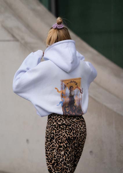 Das Goddesses Hoodie von Julia ehrt die Göttinnen Oranta – Beschützerin Kyivs – und Mokosh, die Mutter allen Lebens. In ihrem Design vereint sie Symbole der ukrainischen Folklore: die Sonnenblume für Lebenskraft, den Blumenkranz als Schutzamulett und geometrische Getreidesymbole für Fruchtbarkeit. Ein Hommage an die Unabhängigkeit und die spirituelle Stärke der Ukraine. 100 % des Erlöses fließen in humanitäre Projekte von Be an Angel e. V. zur Unterstützung von Ukrainer:innen in Not.
